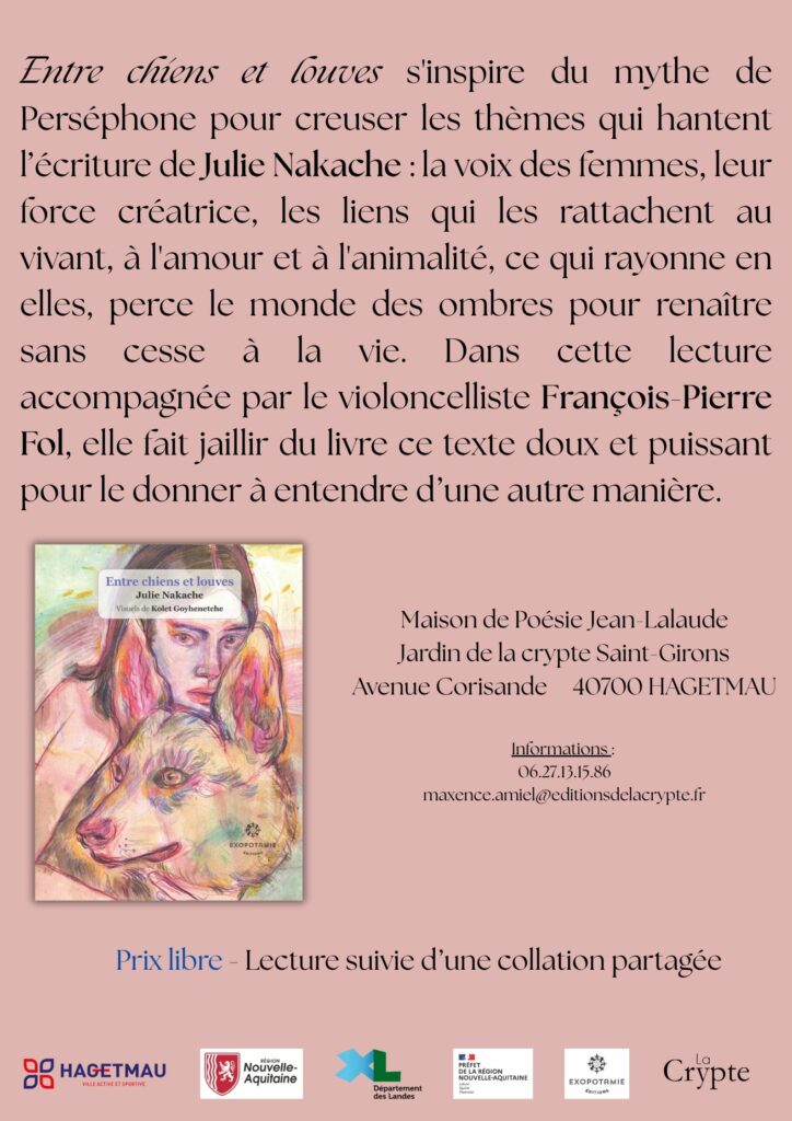 Né à l'initiative de Pierre Seghers (éditeur et poète), Marcel Saint-Martin (peintre et poète), Marie-Louise Haumont (romancière, prix Femina) et Jean Lalaude (professeur agrégé), le prix de La Crypte a vu le jour en 1984. Soutenu par la ville de Hagetmau et le conseil départemental des Landes, le prix de la Crypte récompense un·e jeune poète·sse francophone de moins de 30 ans, qui n'a jamais été publié·e par un éditeur professionnel, que … En savoir plus